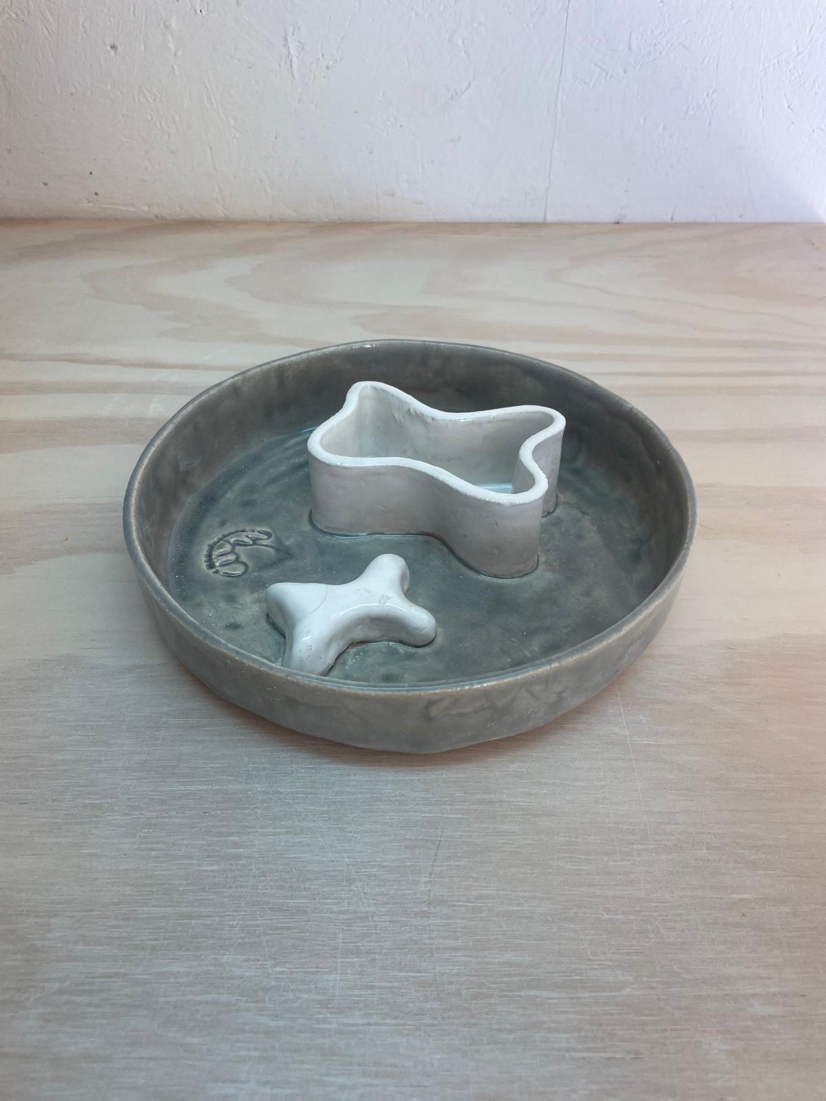 Für Hunde, die zu schnell fressen. Geformt mit sanften Erhebungen in Knochenform, die zum ruhigen Fressen anregen. Erhältlich in zwei Größen: S, M und L.